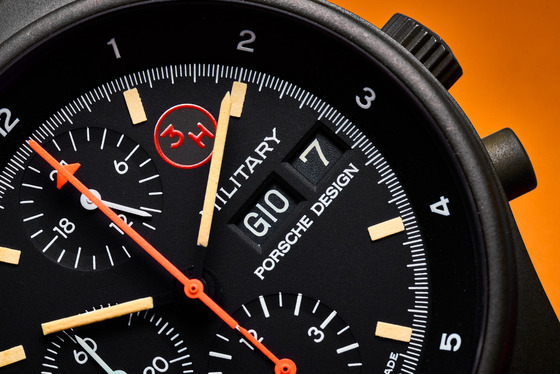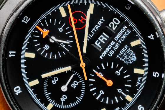 - Orange painted “Airplane” on a black chrono totalizer hand